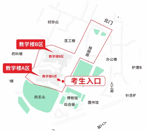 请考生再次留意入场流程:凭本人准考证、有效居民身份证件进入考点→→第一时间去往储物区域(位于考场封闭区外的教学楼A栋面向图书馆方向架空层区)存放手机及其他个人物品→→按工作人员指引排队,有序通过智能安检门检测后进入考场封闭区内(教学楼B栋)→→上楼去往相应考场(试室),在考场(试室)门口接受人脸识别和监考员人工核查,进入相应考场(试室),对号入座。