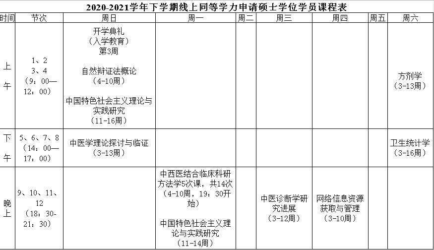 (四) 课程表(港澳台、外国留学硕士、博士在读研究生线上班级)