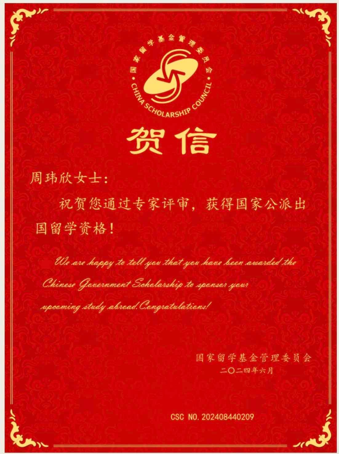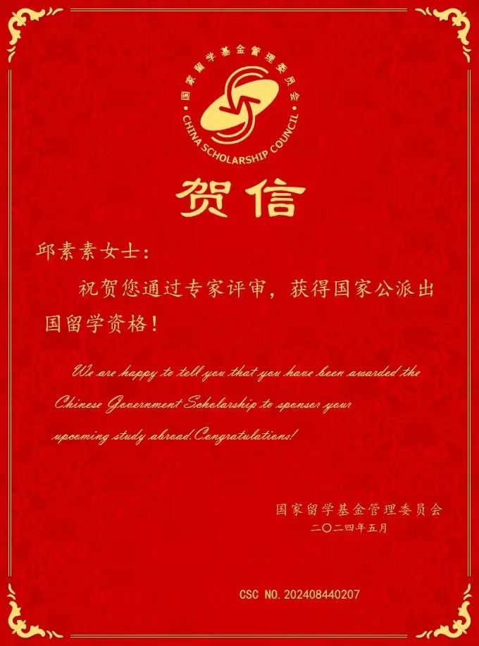 近日,国家留学基金管理委员会公布“2024年国家建设高水平大学公派研究生项目”录取结果。我校第二临床医学院硕士研究生周玮欣(导师林颖教授)、第七临床医学院硕士研究生邱素素(导师林国彬教授)积极申报并成功获批资助,将分别赴荷兰格罗宁根大学、德国汉诺威医学院攻读博士学位研究生。学校正值百年校庆,此次获批,是我校研究生用优异的成绩为学校百年校庆献礼。