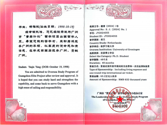新学期新气象!近日,我校楚惠等4名研究生获2024年广州市“菁英计划”留学项目资助,录取人数创我校历年新高。继今年6月我校2名研究生获2024年国家建设高水平大学公派研究生项目资助后,再创佳绩,为新学期增添新色彩、注入新动能,再次献礼我校百年校庆。