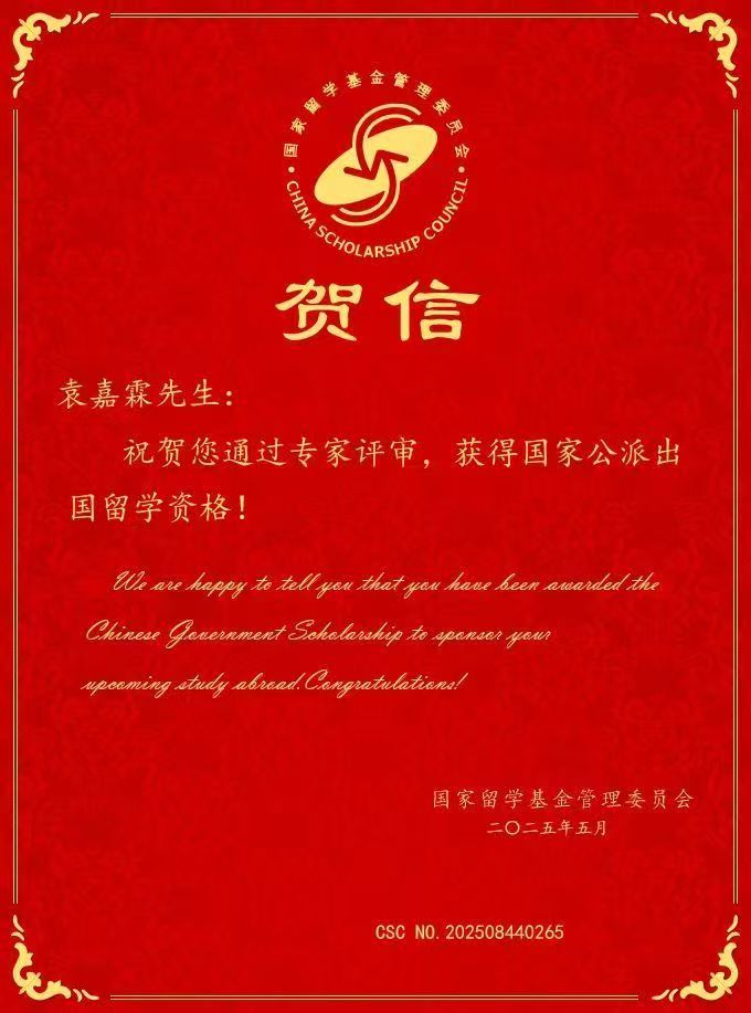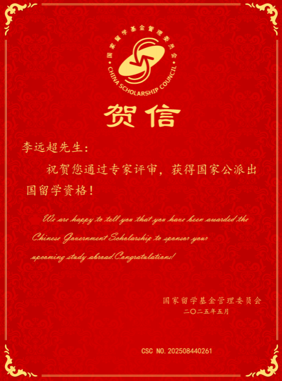 近日,国家留学基金管理委员会公布“2025年国家建设高水平大学公派研究生项目”录取结果,我校李远超、吕宗泽等7名研究生成功获得国家留学基金委公派研究生项目资助,将分赴美国、德国、意大利、澳大利亚等国家的世界一流学府及一流科研机构,开启留学之旅。此次学校国家公派留学研究生获资助人数较近年显著增长(2023年获资助3人,2024年获资助2人),录取率达100%。近年来,我校研究生陆续公派分赴美国斯坦福大学、哈佛大学、耶鲁大学等世界一流知名高校留学,为学校新百年发展开新局、开好局注入新动能。