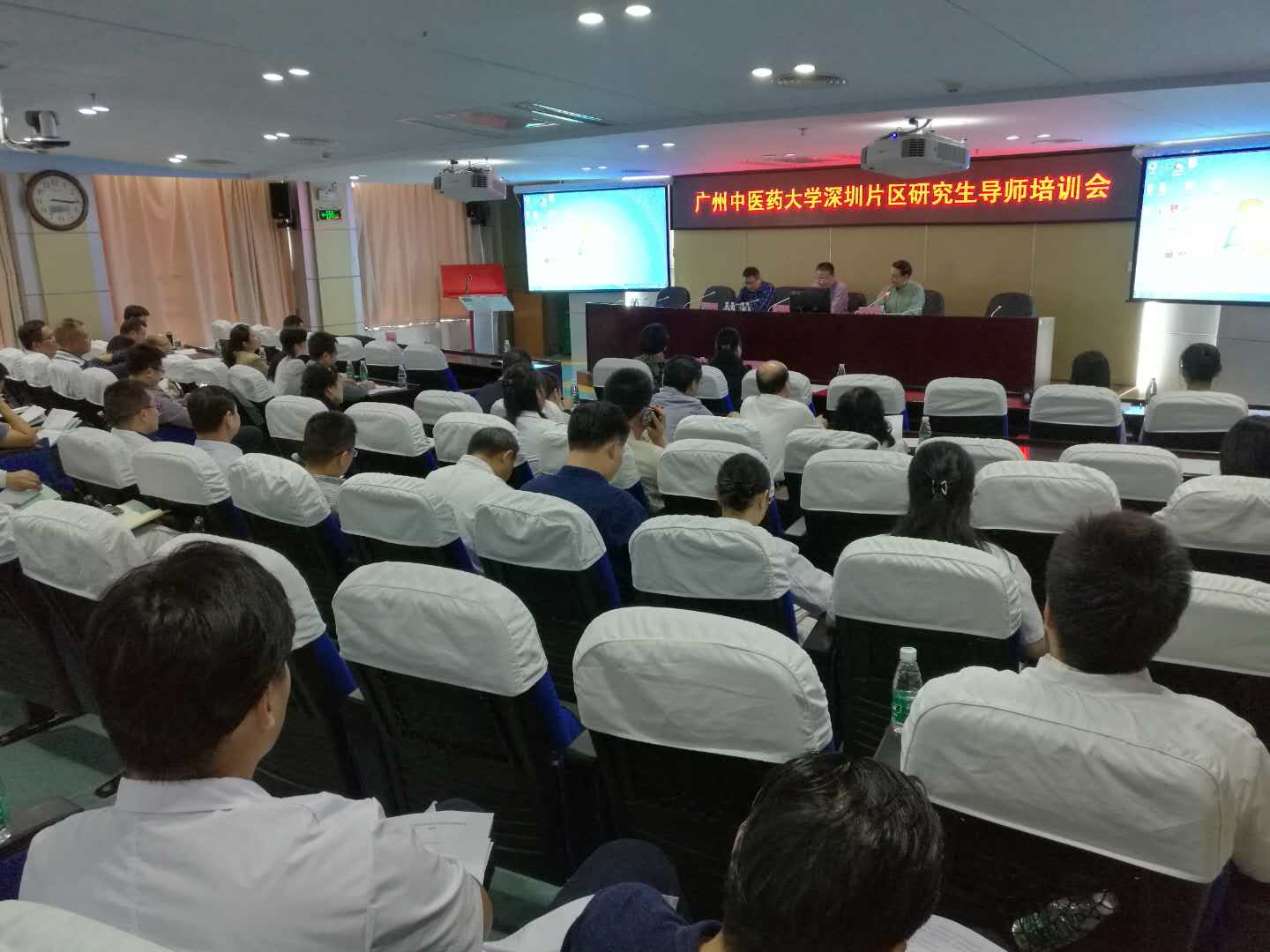 2017年11月6日,研究生院在深圳中医院举行了广州中医药大学深圳片区研究生导师培训会,研究生院长邝卫红、副院长鄢来均、图书馆馆长张正、第一临床医学院教务处处长方熙菇、研究生院培养办主任罗向晗等参加了本次培训。许能贵副校长对2017年度研究生导师培训工作进行了安排和部署。