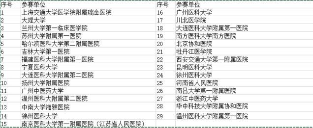 1.全国29所高校或医院参赛队伍名单