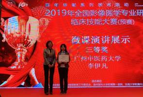 广州中医大学第一附属医院影像科一直秉承“医教研”三位一体的方式培养研究生,除了临床基础理论学习,尤其注重培养学生的教学能力。“传承创新,精诚至善”,教学是传承的过程非常重要的一环。影像科多次举办授课活动,如英语授课比赛,每周三研究生小讲课等,锻炼了学生的授课技能。此次参赛队伍获得的成绩及李伊凡同学在微课演讲比赛中的好名次与科室的培养理念不无关系。最后,我们热烈祝贺我校影像专业代表队成功晋级全国影像医学专业研究生临床技能大赛决赛,也预祝他们在决赛中能取得好成绩!