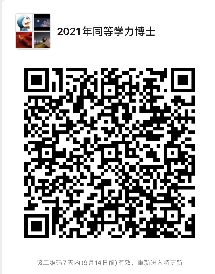 二、2021年同等学力申请博士学位学员班级微信群(有效期至9月14日)