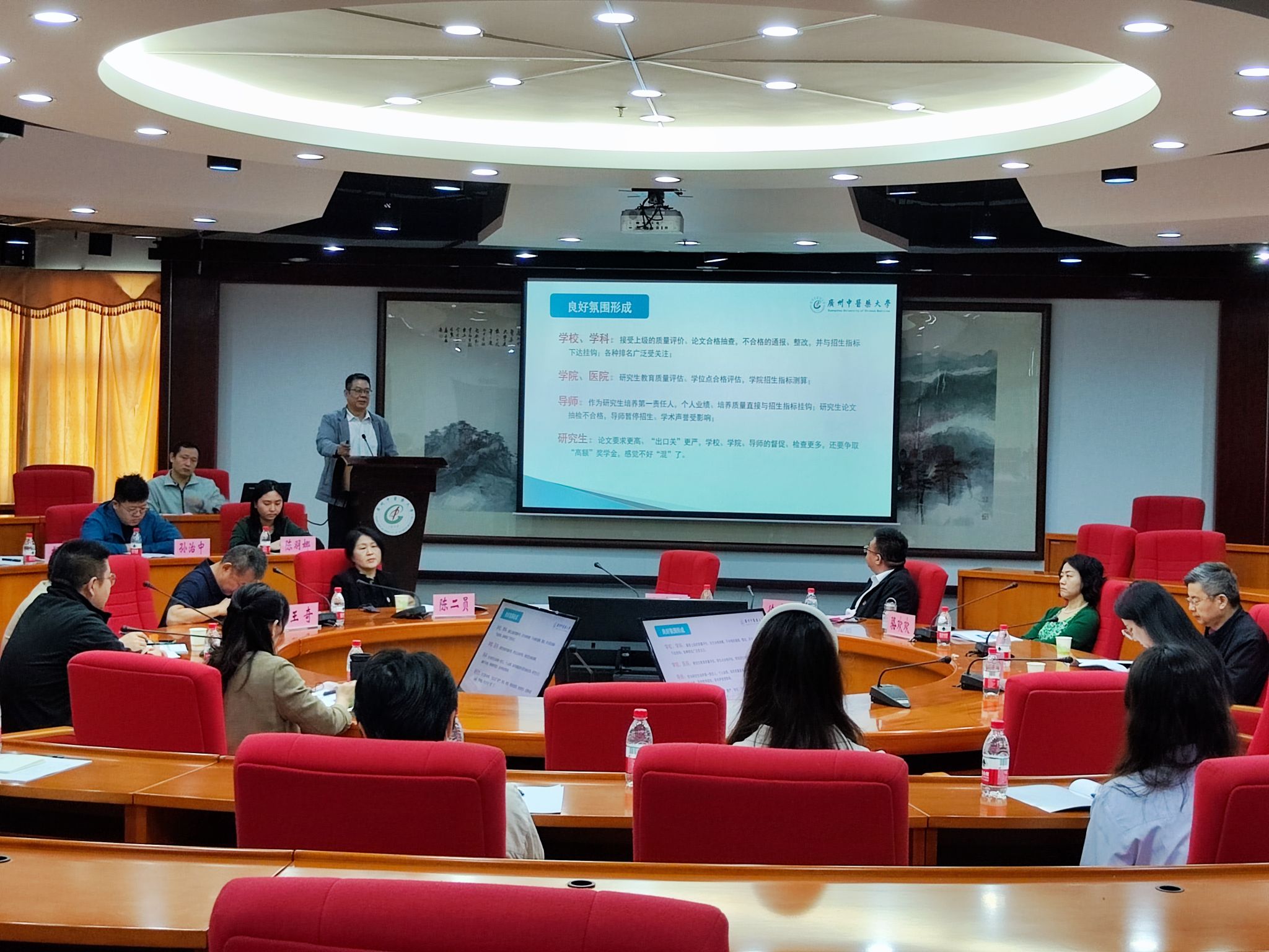 访学归国研究生代表陈羽娜就前期执行项目的经验作分享与交流;2022-2023年度立项获资助研究生代表孙治中就当前阶段的访学要求表明态度,将珍惜此次访学机会,担当责任,不断努力学习和成长,为中医药事业的高质量发展贡献力量。