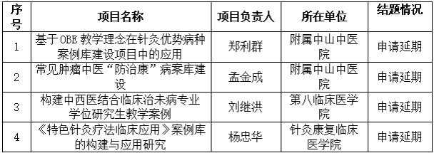 另有4项2024年度专业学位研究生教学案例库建设培育项目,经项目负责人申请,所在培养单位审批同意,申请延期结题,具体如下:
