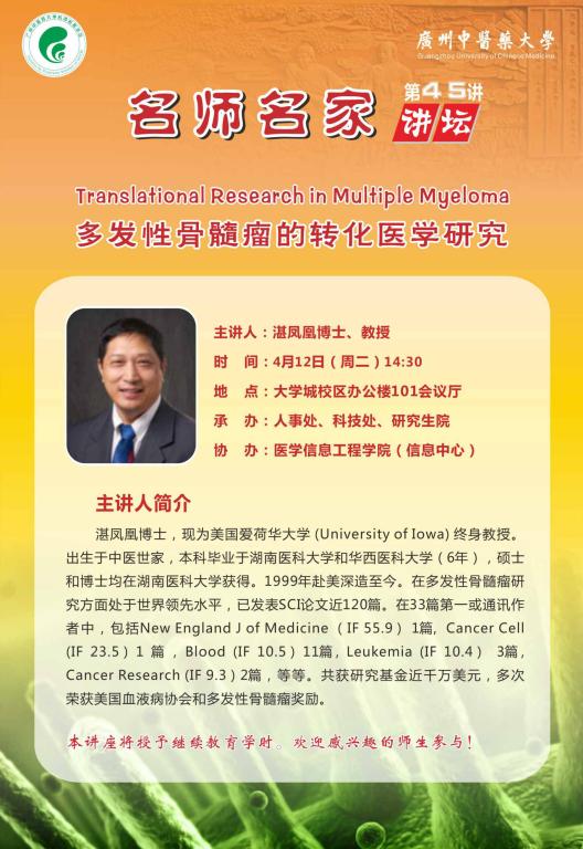 上一条:学术讲座:智能信息科技在中医药领域应用与展望 下一条:学术讲座:中医基础理论重点学科/基础医学院学术专题讲座