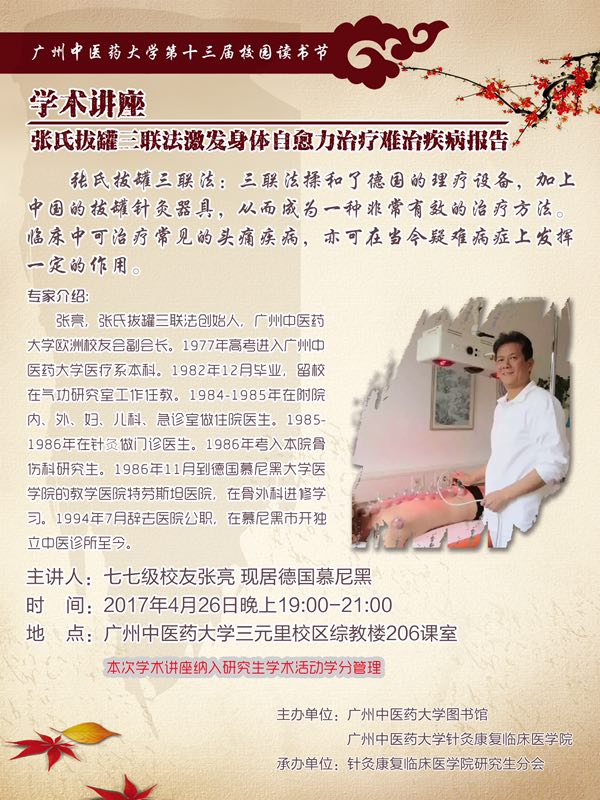 上一条:学术讲座:刘氏头针的介绍及应用 下一条:学术讲座:中药调节神经细胞自噬治疗帕金森病的研究探讨