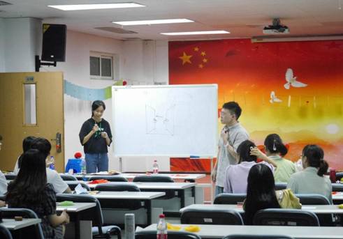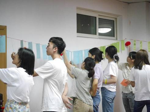 干货满满的讲座结束后,妙趣横生的“双节同庆游园会”拉开了帷幕。此部分由三个小游戏组成。首先是“报7游戏”,从小于10的数字开始报,遇到含有数字7或7的倍数时拍桌。其次是“你画我猜”,根据台上同学的画来猜词语。最后是“猜灯谜”。同学们在活动中热情高涨,游戏结束后都用参与奖章兑换了对应的精美礼品。最后在场所有人进行了合影留念。