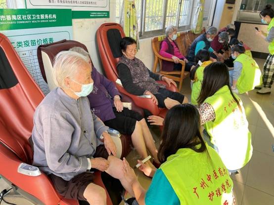 讲座结束后,紧接着中医特色护理服务把活动推向高潮。16名研究生党员和积极分子同志分工明确,以小组为单位,询问老年人现存的健康问题,辩证施护,为;老人们进行耳穴压豆、艾灸和穴位推拿等中医护理服务,同时讲解疗法结束后的注意事项,一对一给予指导,社区居民收获满满。本次健康活动约40位老年人参与,并获得了老年人的一致好评。