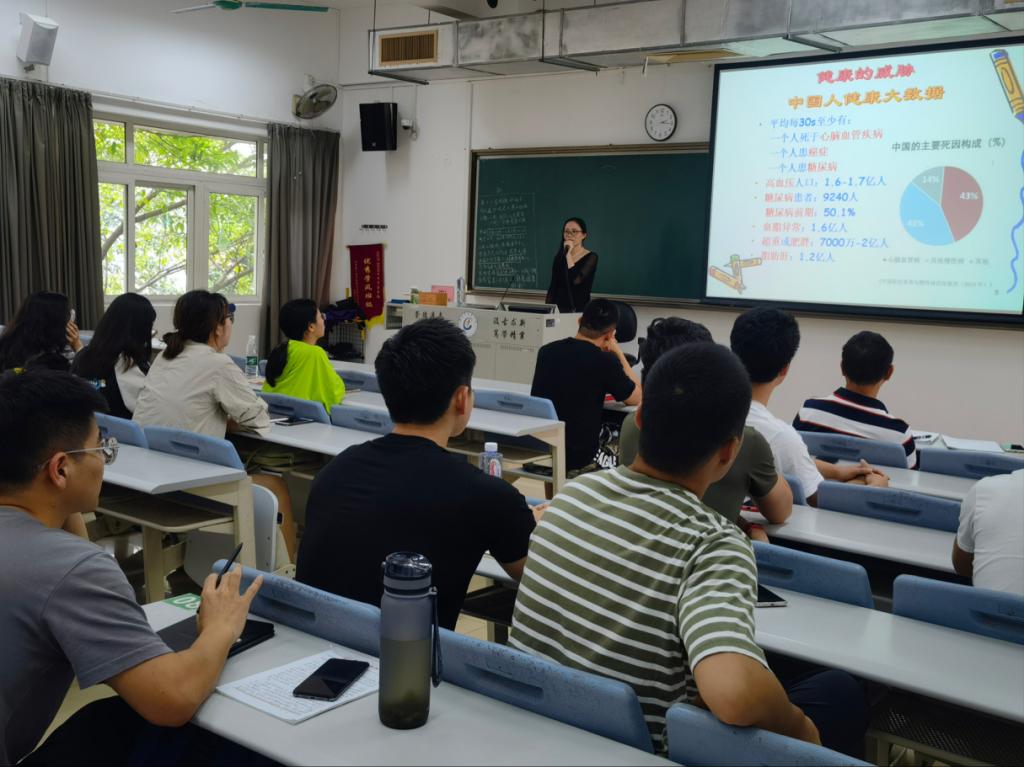 为迎接广州中医药大学本科教育65周年,进一步加强研究生业务学习能力,提高学术理论研究水平,11月4日下午由研究生院主办,我院承办的研究生科技节之体医融合大讲坛系列讲座——《运动处方前沿与研究热点》在教学楼B栋203课室举行。本次讲座由体育健康学院运动医学教研室陈楚杰主任主持,邀请中山大学副教授、体育科研所副主任罗曦娟教授作主讲。